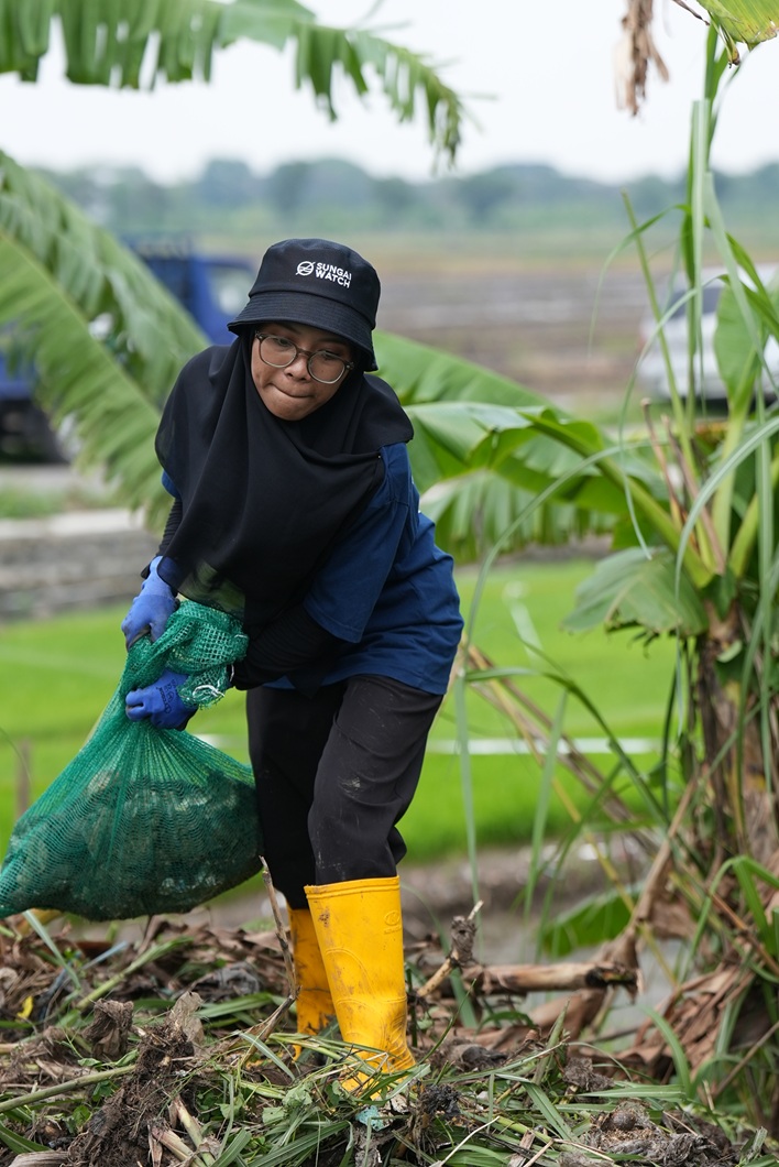 Nearly a year after our first barriers were put in place, over 24 tonnes of inorganic waste has been collected from rivers, sorted and appropriately recycled. Ozone sponsor barriers to help stop the flow of waste, but also a group of amazing humans who clear and sort through every item that is collected. One of the people working on the Ozone barriers is Nabila. She first volunteered on a river cleanup while at university and joined Sungai after graduation. She told us that, “… even when the work is hot and heavy, it feels easier because we do it together.” Thank you Nabila.